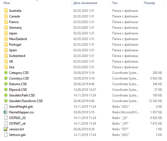 Теперь посмотрим внимательно на картинку выше (исключая папку). Нас интересуют именно конфигурационные файлы *.CSD. Не уверен как они расшифровываются - возможно типа “Coordinates Systems Dictionary”.