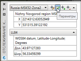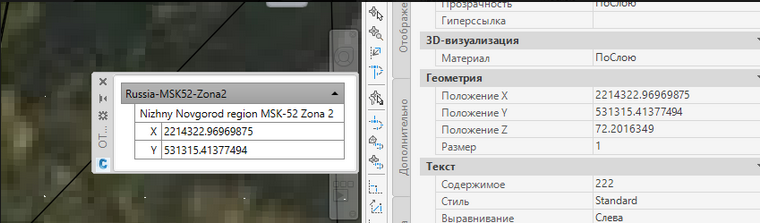 И получим его координаты в назначенной СК чертежу - МСК-52-2