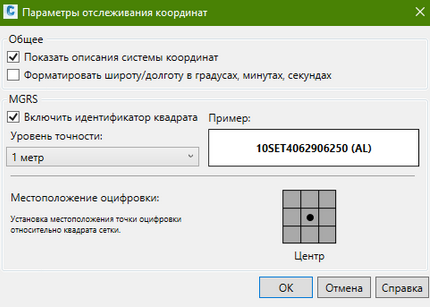 В данном окне можно настраивать неограниченно много различных СК, и значения будут меняться при перемещении курсора по экрану.