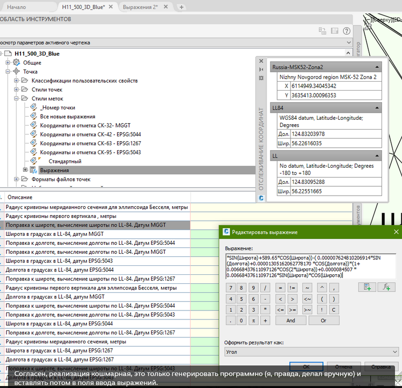 Примечание: преобразования между прямоугольными СК инструментами выражений я не настраивал, правда - но это будет раза в 3 более трудоёмко.