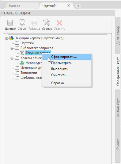 Далее переключаемся на вкладку “обозреватель карт”, библиотека запросов и “Сформировать”