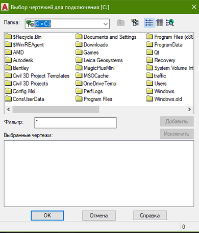 Сперва необходимо подключить чертежи (файлы), с которыми мы будем работать.