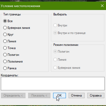 Опции вкладки “геопозиционирование”