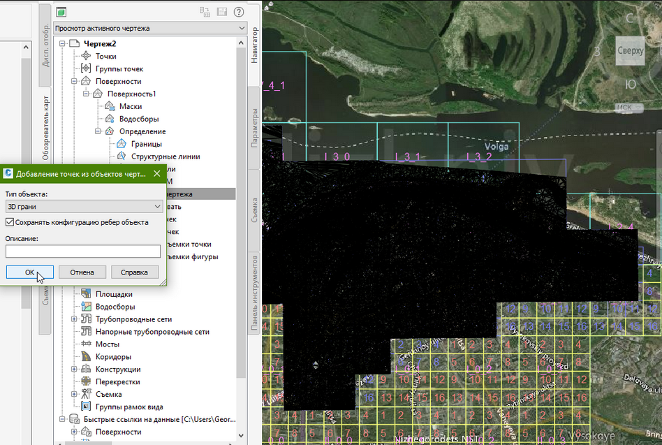 Так как это временные файлы (удалятся после закрытия чертежа даже с сохранением), то сохраним их с копированием в пересчитанных координатах в новый чертеж, либо сразу пустим в дело - здесь у нас 3D-грани, следовательно построим на их основе поверхность, добавив их как Объекты чертежа – 3D-грани обязательно с сохранением конфигурации исходных рёбер.