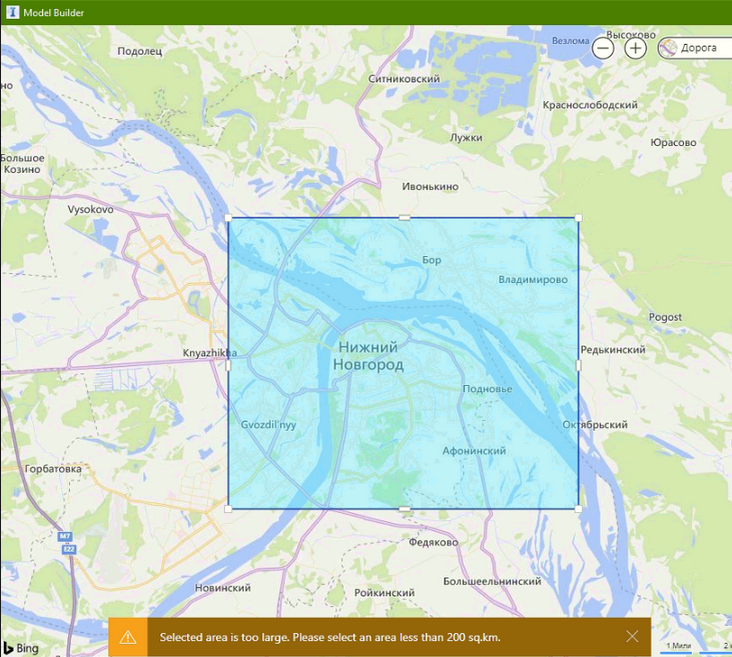 Суть вопроса: при попытке выделить квадрат/полигон местности, превышающий лимит в 200 кв. км программа выдаст предупреждение: