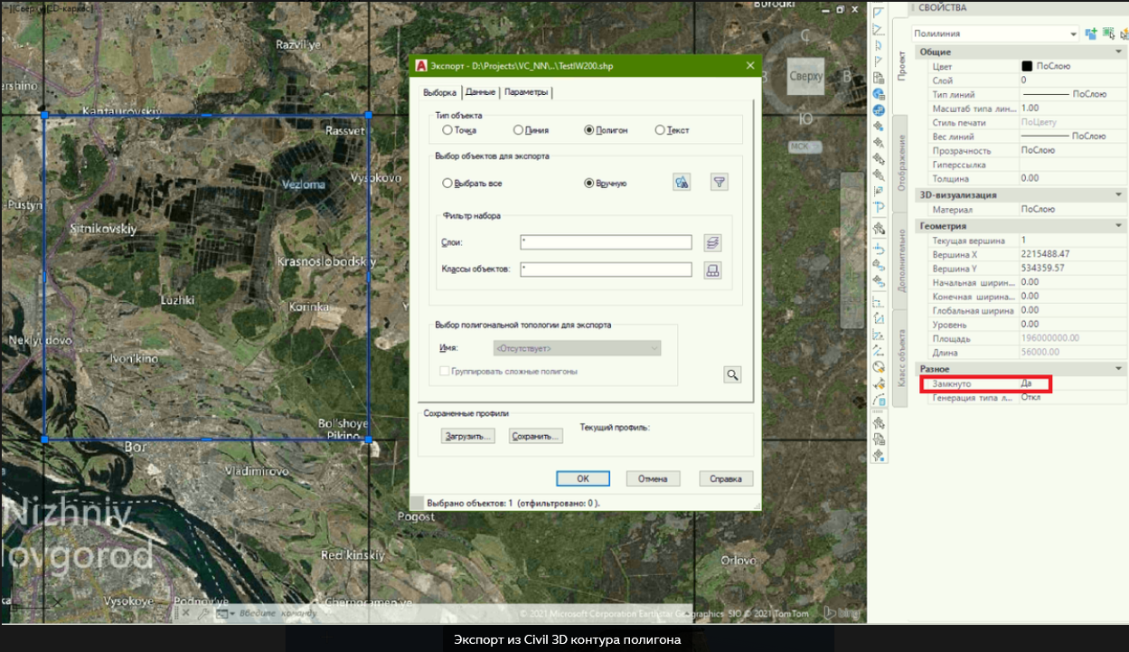 контур из полилинии имеет тег “Замкнуто: Да”