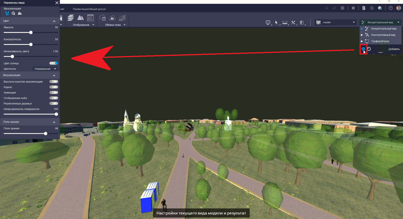 Индикатором скорости отклика модели на выставленные настройки может служить интересная системная опция “Проверка производительности”. Результат выполнения - это справочное диалоговое окно с количество fps для сцены модели.