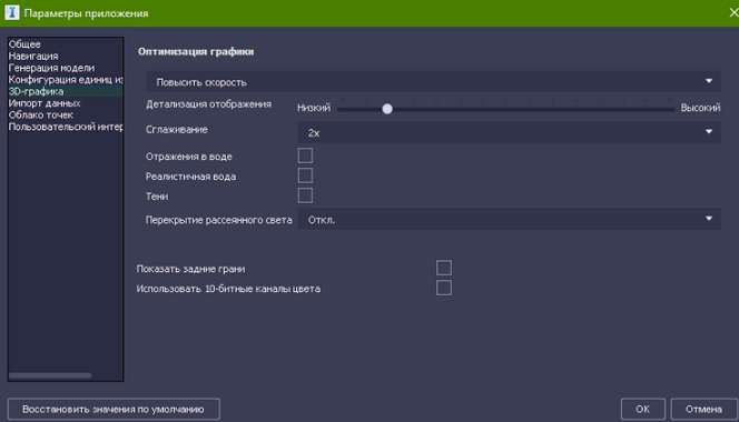 Похожее окно, управляющее детализацией моделей - это параметры 3D-Графики, доступные из Настроек программы (там, как правило, убирается прорисовка фасадов, отражения в воде и т.д.)